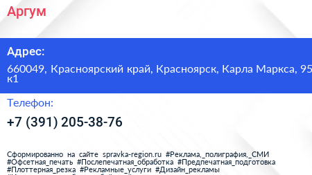 Аргум по адресу 660049, Красноярский край, Красноярск, Карла Маркса, 95 к1 в дальнейшем Организация, размещена в следующих категориях: