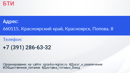 БТИ по адресу 660115, Красноярский край, Красноярск, Попова, 8 в дальнейшем Организация, размещена в следующих категориях: