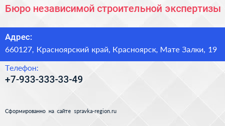 Бюро независимой строительной экспертизы по адресу 660127, Красноярский край, Красноярск, Мате Залки, 19 в дальнейшем Организация, размещена в следующих категориях: