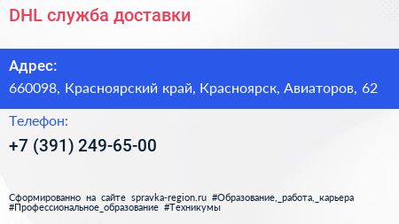DHL, служба доставки по адресу 660098, Красноярский край, Красноярск, Авиаторов, 62 в дальнейшем Организация, размещена в следующих категориях: