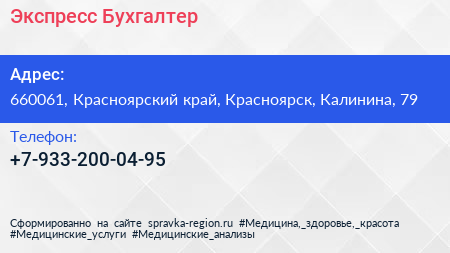 Экспресс Бухгалтер по адресу 660061, Красноярский край, Красноярск, Калинина, 79 в дальнейшем Организация, размещена в следующих категориях: