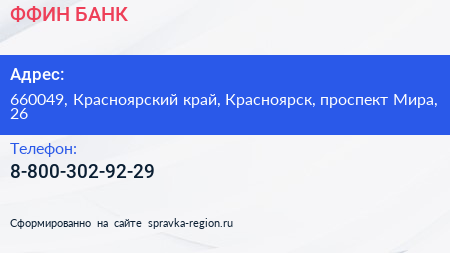 ФФИН БАНК по адресу 660049, Красноярский край, Красноярск, проспект Мира, 26 в дальнейшем Организация, размещена в следующих категориях: