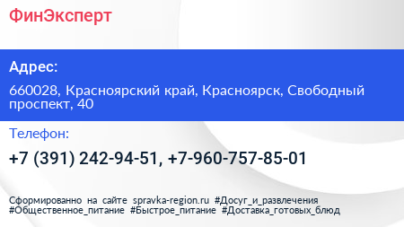 ФинЭксперт по адресу 660028, Красноярский край, Красноярск, Свободный проспект, 40 в дальнейшем Организация, размещена в следующих категориях: