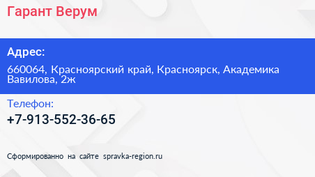 Гарант-Верум по адресу 660064, Красноярский край, Красноярск, Академика Вавилова, 2ж в дальнейшем Организация, размещена в следующих категориях: