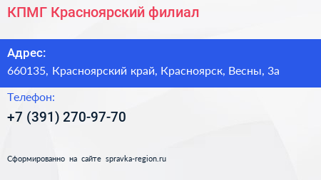 КПМГ, Красноярский филиал по адресу 660135, Красноярский край, Красноярск, Весны, 3а в дальнейшем Организация, размещена в следующих категориях: