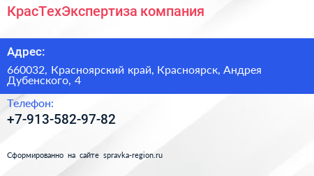 КрасТехЭкспертиза, компания по адресу 660032, Красноярский край, Красноярск, Андрея Дубенского, 4 в дальнейшем Организация, размещена в следующих категориях: