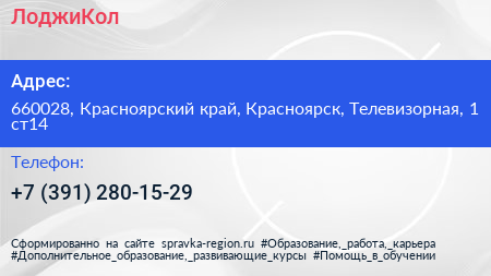 ЛоджиКол по адресу 660028, Красноярский край, Красноярск, Телевизорная, 1 ст14 в дальнейшем Организация, размещена в следующих категориях: