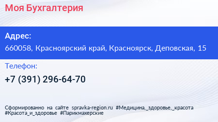 Моя Бухгалтерия по адресу 660058, Красноярский край, Красноярск, Деповская, 15 в дальнейшем Организация, размещена в следующих категориях: