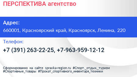 ПЕРСПЕКТИВА, агентство по адресу 660001, Красноярский край, Красноярск, Ленина, 220 в дальнейшем Организация, размещена в следующих категориях:
