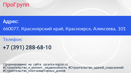 ПроГрупп по адресу 660077, Красноярский край, Красноярск, Алексеева, 101 в дальнейшем Организация, размещена в следующих категориях: