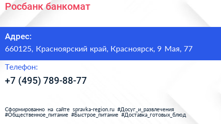Росбанк, банкомат по адресу 660125, Красноярский край, Красноярск, 9 Мая, 77 в дальнейшем Организация, размещена в следующих категориях: