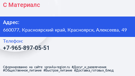 С-Материалс по адресу 660077, Красноярский край, Красноярск, Алексеева, 49 в дальнейшем Организация, размещена в следующих категориях: