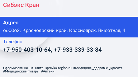 Сибэкс-Кран по адресу 660062, Красноярский край, Красноярск, Высотная, 4 в дальнейшем Организация, размещена в следующих категориях: