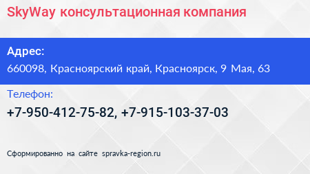 SkyWay, консультационная компания по адресу 660098, Красноярский край, Красноярск, 9 Мая, 63 в дальнейшем Организация, размещена в следующих категориях:
