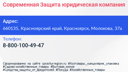 Современная Защита, юридическая компания по адресу 660135, Красноярский край, Красноярск, Молокова, 37а в дальнейшем Организация, размещена в следующих категориях: