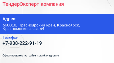 ТендерЭксперт, компания по адресу 660018, Красноярский край, Красноярск, Красномосковская, 64 в дальнейшем Организация, размещена в следующих категориях:
