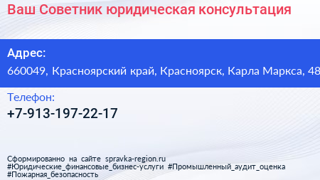 Ваш Советник, юридическая консультация по адресу 660049, Красноярский край, Красноярск, Карла Маркса, 48 в дальнейшем Организация, размещена в следующих категориях: