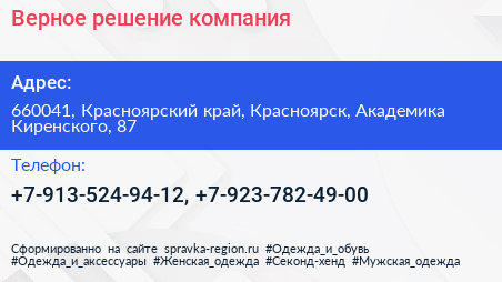 Верное решение, компания по адресу 660041, Красноярский край, Красноярск, Академика Киренского, 87 в дальнейшем Организация, размещена в следующих категориях: