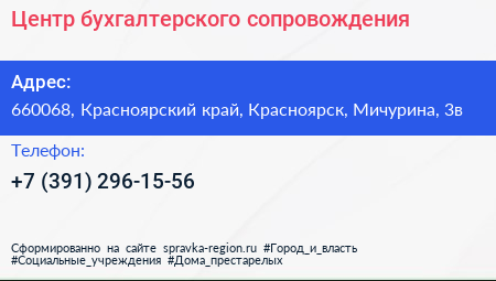 Центр бухгалтерского сопровождения по адресу 660068, Красноярский край, Красноярск, Мичурина, 3в в дальнейшем Организация, размещена в следующих категориях: