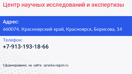 Центр научных исследований и экспертизы по адресу 660074, Красноярский край, Красноярск, Борисова, 14 в дальнейшем Организация, размещена в следующих категориях: