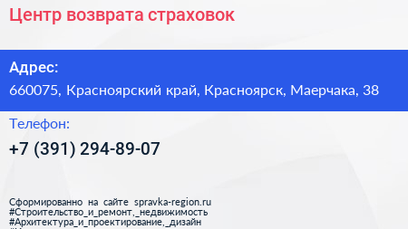 Центр возврата страховок по адресу 660075, Красноярский край, Красноярск, Маерчака, 38 в дальнейшем Организация, размещена в следующих категориях:
