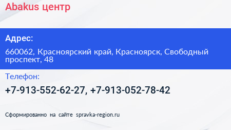 Abakus, центр по адресу 660062, Красноярский край, Красноярск, Свободный проспект, 48 в дальнейшем Организация, размещена в следующих категориях: