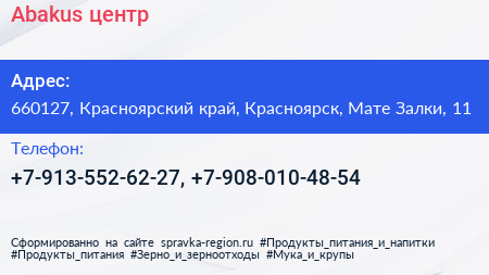 Abakus, центр по адресу 660127, Красноярский край, Красноярск, Мате Залки, 11 в дальнейшем Организация, размещена в следующих категориях: