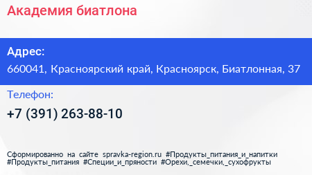 Академия биатлона по адресу 660041, Красноярский край, Красноярск, Биатлонная, 37 в дальнейшем Организация, размещена в следующих категориях: