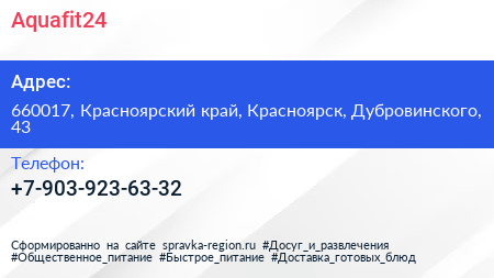 Aquafit24 по адресу 660017, Красноярский край, Красноярск, Дубровинского, 43 в дальнейшем Организация, размещена в следующих категориях: