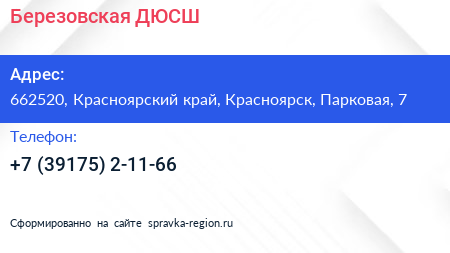 Березовская ДЮСШ по адресу 662520, Красноярский край, Красноярск, Парковая, 7 в дальнейшем Организация, размещена в следующих категориях: