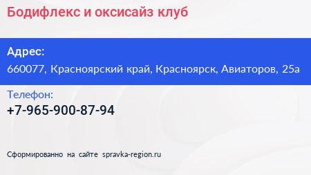 Бодифлекс и оксисайз клуб по адресу 660077, Красноярский край, Красноярск, Авиаторов, 25а в дальнейшем Организация, размещена в следующих категориях: