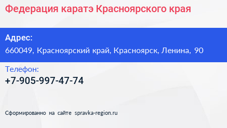 Федерация каратэ Красноярского края по адресу 660049, Красноярский край, Красноярск, Ленина, 90 в дальнейшем Организация, размещена в следующих категориях:
