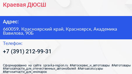 Краевая ДЮСШ по адресу 660059, Красноярский край, Красноярск, Академика Вавилова, 90Б в дальнейшем Организация, размещена в следующих категориях: