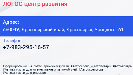 ЛОГОС, центр развития по адресу 660049, Красноярский край, Красноярск, Урицкого, 61 в дальнейшем Организация, размещена в следующих категориях: