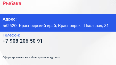 Рыбака по адресу 662520, Красноярский край, Красноярск, Школьная, 31 в дальнейшем Организация, размещена в следующих категориях: