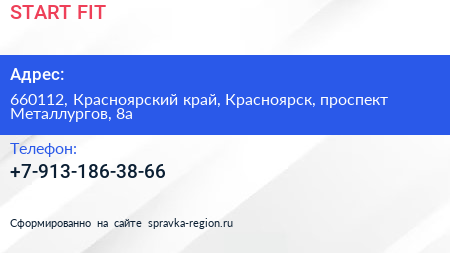 START FIT по адресу 660112, Красноярский край, Красноярск, проспект Металлургов, 8а в дальнейшем Организация, размещена в следующих категориях: