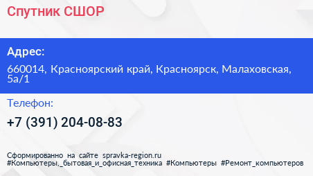 Спутник, СШОР по адресу 660014, Красноярский край, Красноярск, Малаховская, 5а/1 в дальнейшем Организация, размещена в следующих категориях: