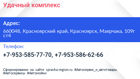 Удачный, комплекс по адресу 660048, Красноярский край, Красноярск, Маерчака, 109г ст4 в дальнейшем Организация, размещена в следующих категориях: