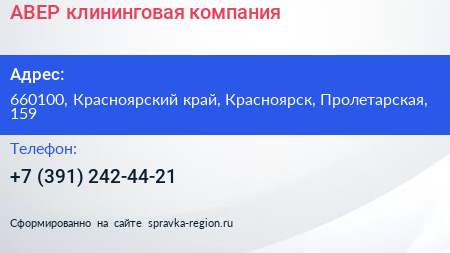 АВЕР, клининговая компания по адресу 660100, Красноярский край, Красноярск, Пролетарская, 159 в дальнейшем Организация, размещена в следующих категориях: