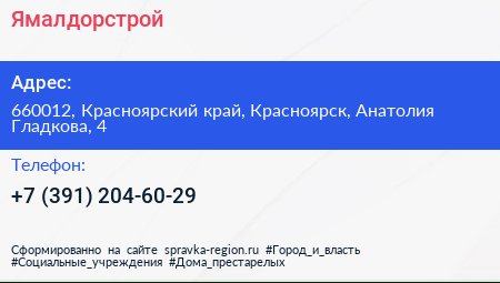 Ямалдорстрой по адресу 660012, Красноярский край, Красноярск, Анатолия Гладкова, 4 в дальнейшем Организация, размещена в следующих категориях: