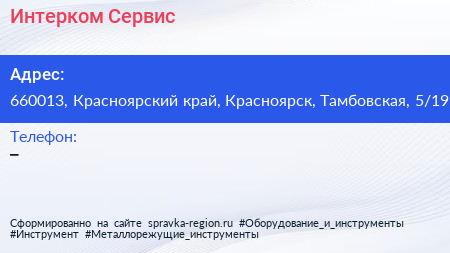 Интерком-Сервис по адресу 660013, Красноярский край, Красноярск, Тамбовская, 5/19 в дальнейшем Организация, размещена в следующих категориях:
