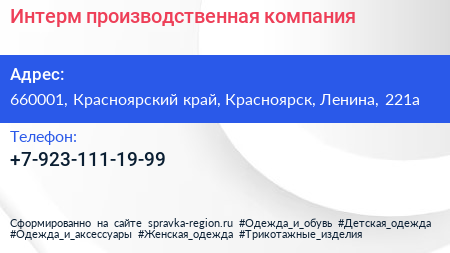 Интерм, производственная компания по адресу 660001, Красноярский край, Красноярск, Ленина, 221а в дальнейшем Организация, размещена в следующих категориях: