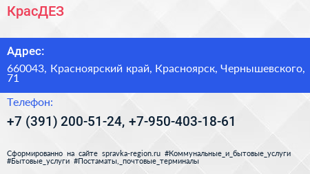 КрасДЕЗ по адресу 660043, Красноярский край, Красноярск, Чернышевского, 71 в дальнейшем Организация, размещена в следующих категориях: