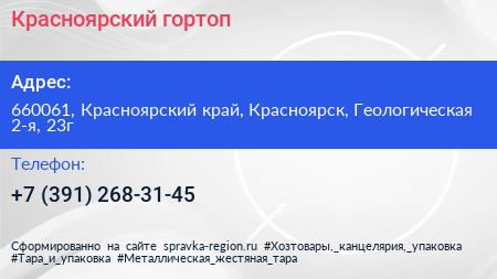 Красноярский гортоп по адресу 660061, Красноярский край, Красноярск, Геологическая 2-я, 23г в дальнейшем Организация, размещена в следующих категориях: