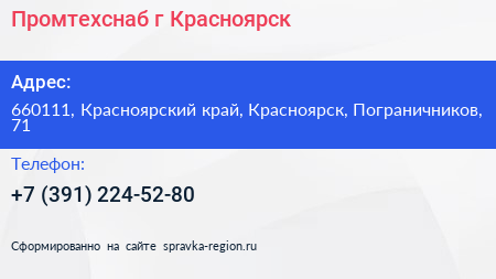 Промтехснаб, г. Красноярск по адресу 660111, Красноярский край, Красноярск, Пограничников, 71 в дальнейшем Организация, размещена в следующих категориях:
