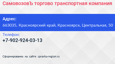 СамовозовЪ, торгово-транспортная компания по адресу 663035, Красноярский край, Красноярск, Центральная, 50 в дальнейшем Организация, размещена в следующих категориях:
