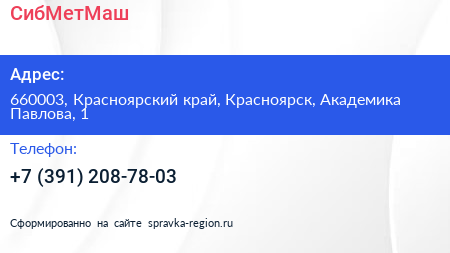 СибМетМаш по адресу 660003, Красноярский край, Красноярск, Академика Павлова, 1 в дальнейшем Организация, размещена в следующих категориях: