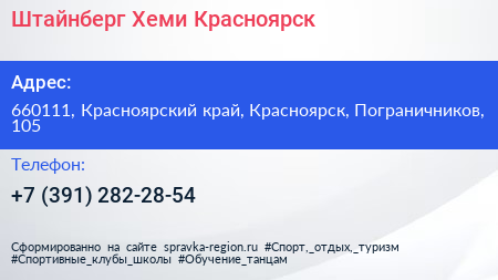 Штайнберг Хеми Красноярск по адресу 660111, Красноярский край, Красноярск, Пограничников, 105 в дальнейшем Организация, размещена в следующих категориях: