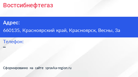 Востсибнефтегаз по адресу 660135, Красноярский край, Красноярск, Весны, 3а в дальнейшем Организация, размещена в следующих категориях: