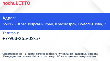 hochuLETTO по адресу 660125, Красноярский край, Красноярск, Водопьянова, 2 в дальнейшем Организация, размещена в следующих категориях:
